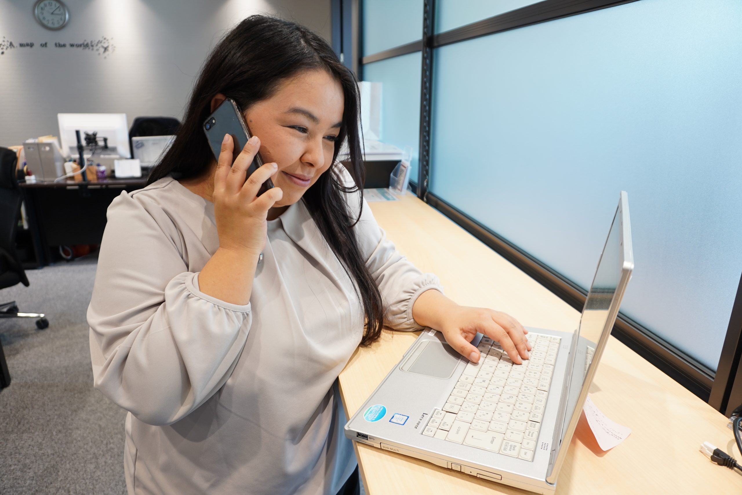また、書類作成などの事務手続きも業務のひとつです。これまで仕事でパソコンを利用する機会が少なかったので、サンキョウテクノスタッフに入社するまでは、タイピングスピードも遅くパソコンスキルは無いに等しかったです。しかし現在、社内はもちろん、お客様にもメールや資料の提示をするので必然的にパソコンに強くなっていきました。先輩たちにもタイピングが早くなったことを褒められ、とても嬉しかったです。