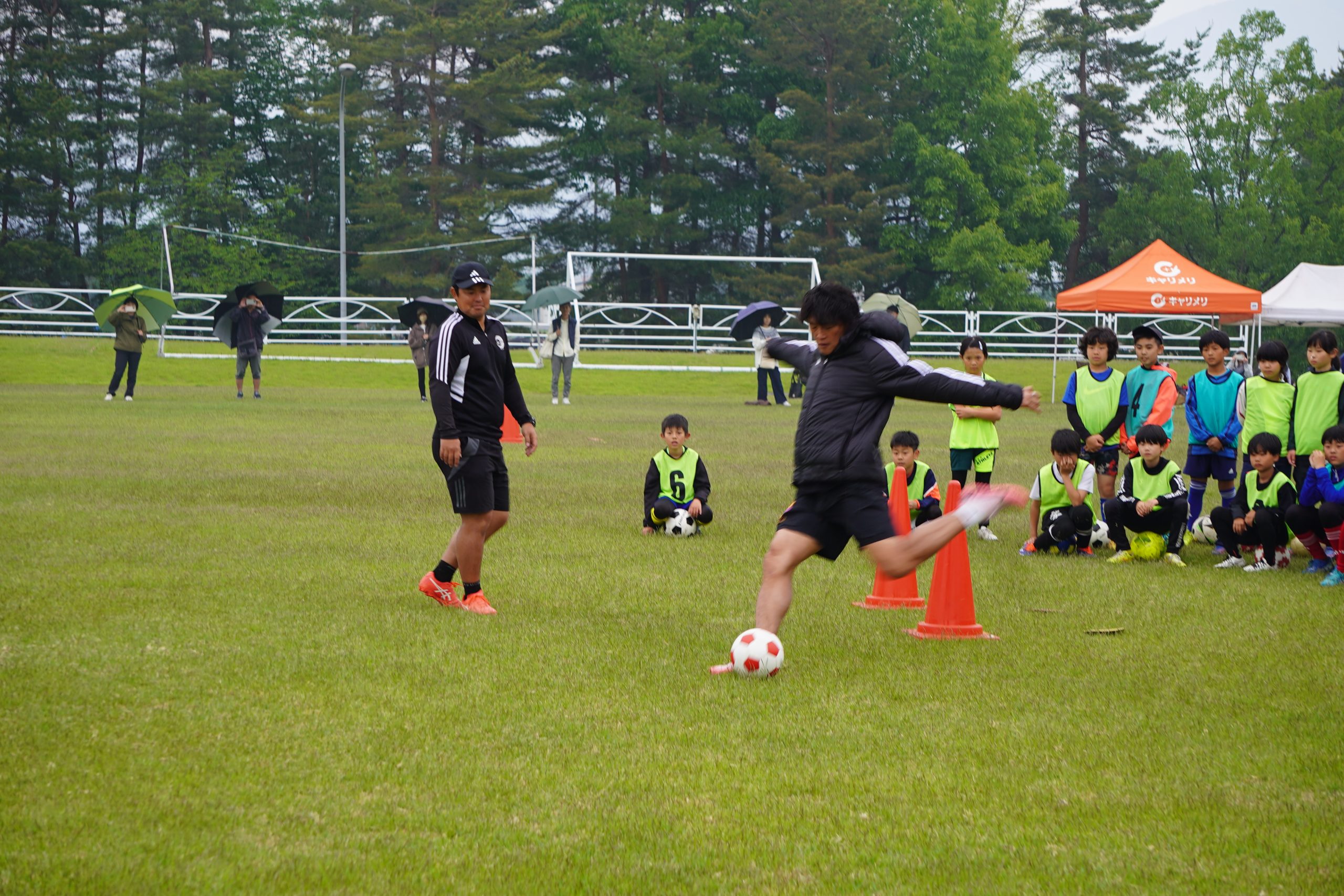 講師には、元日本代表:李忠成氏はじめ、土橋宏由樹氏(元松本山雅)、長谷川太郎氏(元ヴァンフォーレ甲府)、白尾秀人氏(元松本山雅)といった豪華なメンバーが登場!3つのグループに分かれて、それぞれの指導を楽しみながら受けていました。