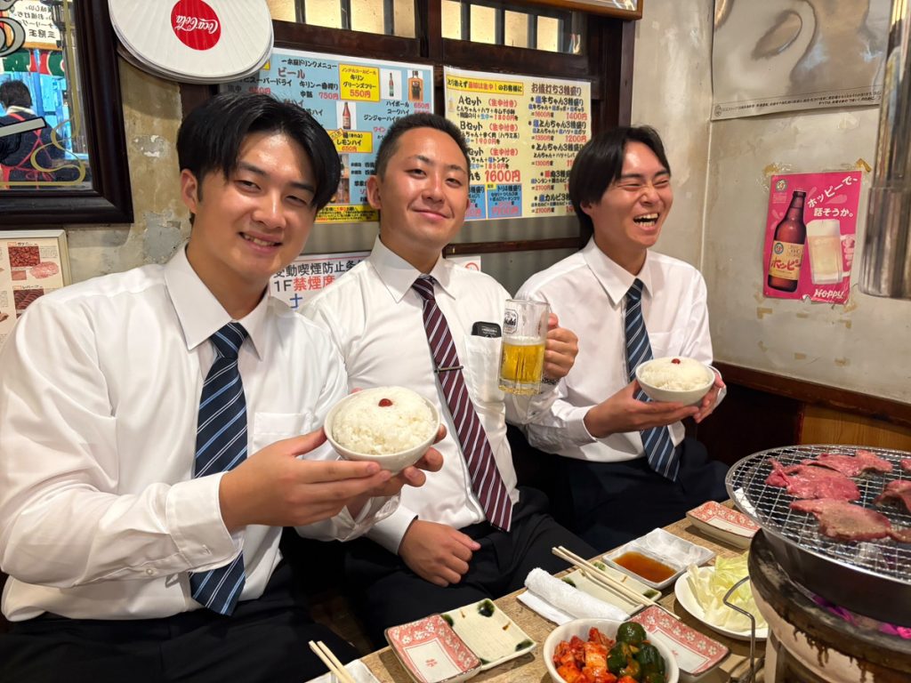 内定式や先輩社員との交流会を終えたあとは、採用担当者と一緒に食事会へ。